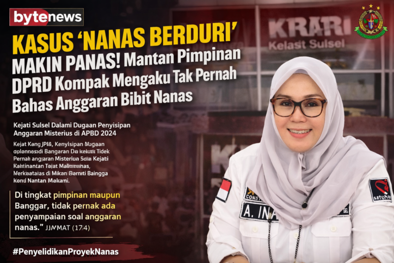 bytenews.idMAKASSAR — Penyelidikan dugaan proyek kontroversial pengadaan bibit nanas terus bergulir. Kejaksaan Tinggi Sulawesi Selatan memeriksa sejumlah mantan pimpinan DPRD untuk mengurai asal-usul munculnya anggaran yang diduga tidak pernah dibahas secara resmi dalam proses legislasi.